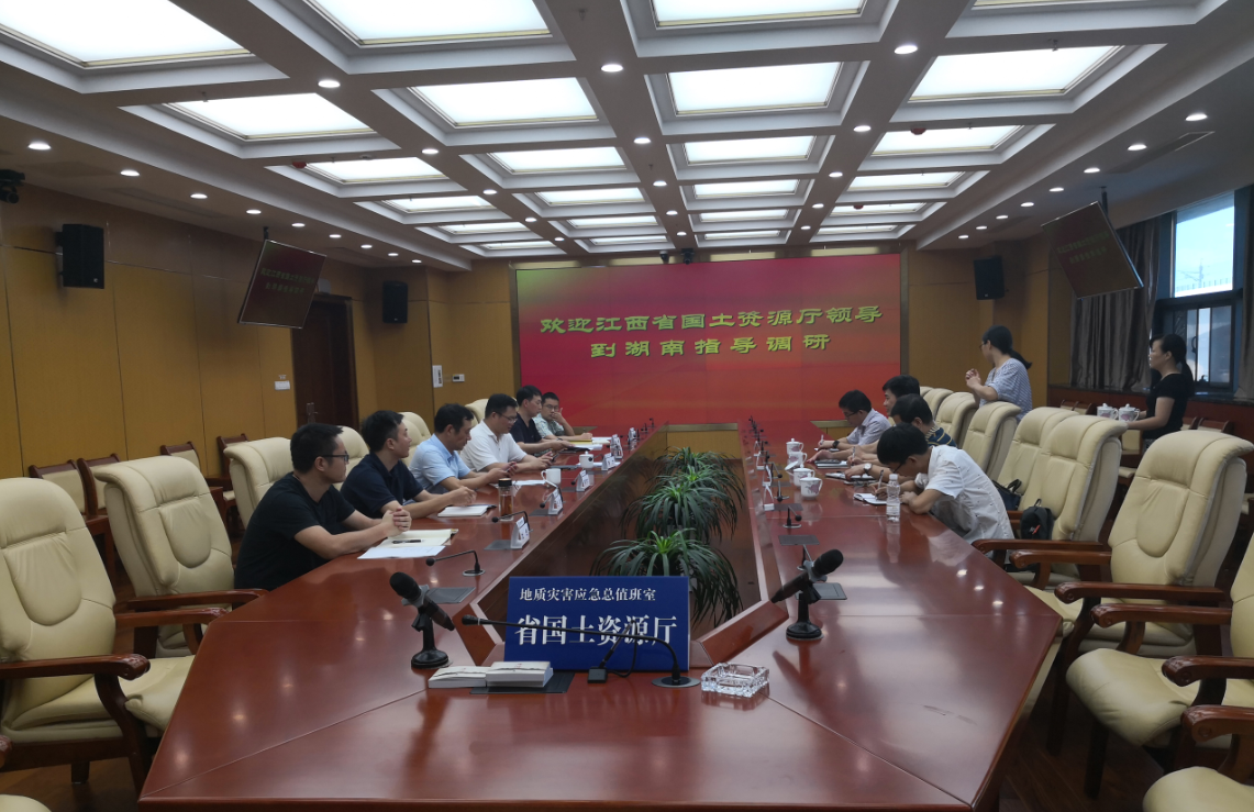 8月21日下午,江西省国土资源厅领导到湖南省国土资源厅进行调研,参观了我公司开发设计的“湖南省地质灾害气象风险预警系统”。